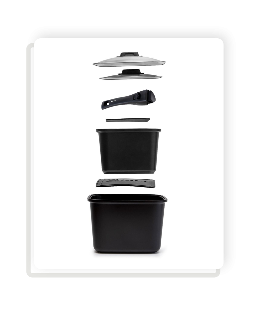 • The lids are developed in such a way that they ‘puzzle’ into each other, enabling the pots to not move within each other.